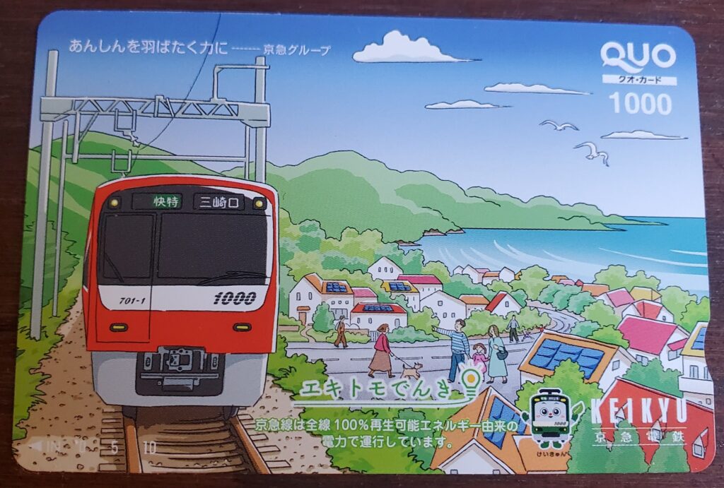 微力ながら一家庭として京急の応援をすることができました。そのお礼としてもらったオリジナルQUOカード(+メッセージカード)は、「実用的」+「特別感」+「環境貢献の実感」 がそろった内容です。企業も家庭もお互いウィンウィンの関係です。