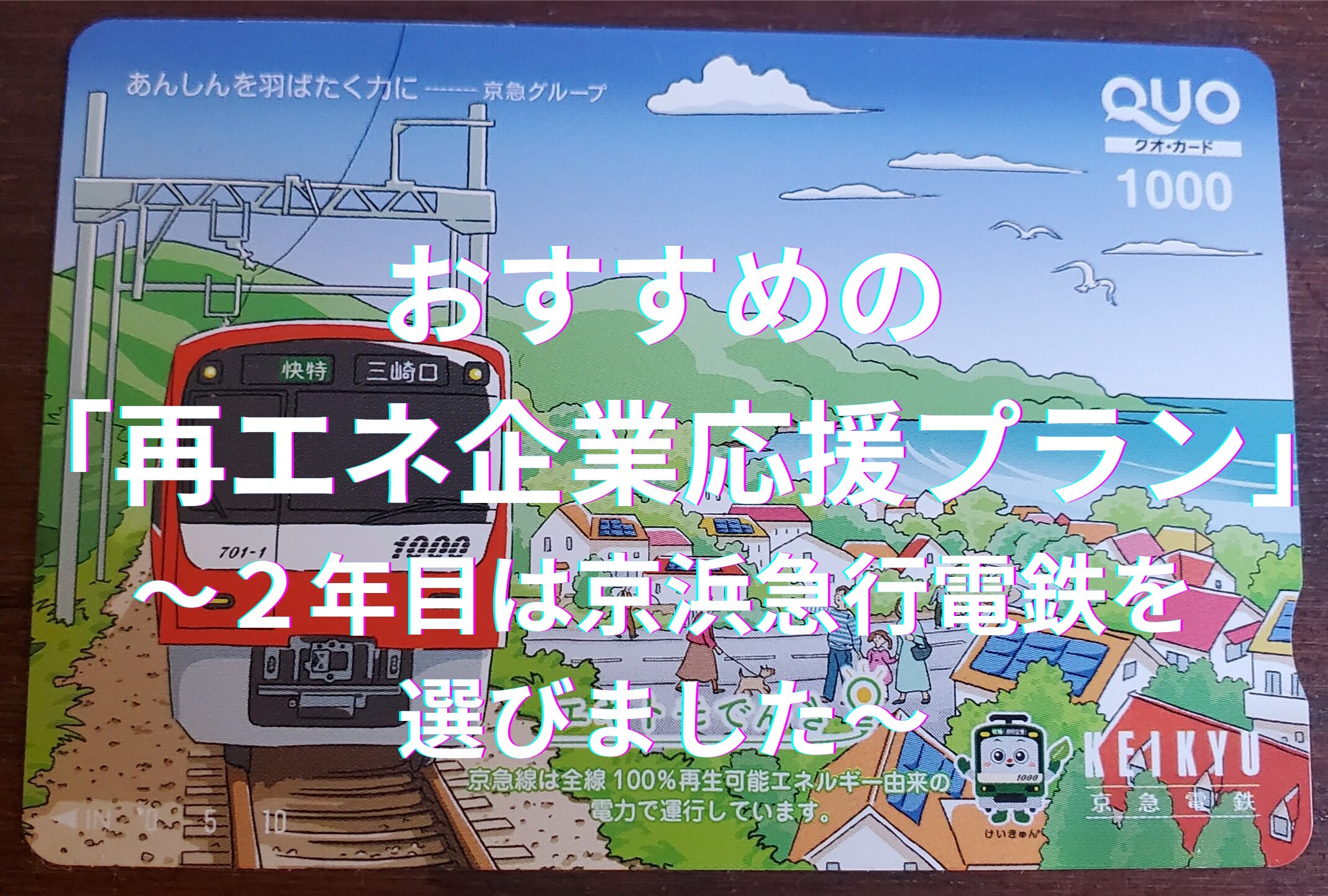 「再エネ企業応援プラン」への加入を開始して2年目の今年は、「京急の応援」に申し込み、お礼としてオリジナルQUOカード(1,000円分) が届きました。